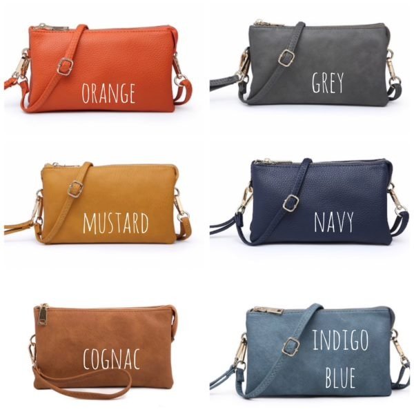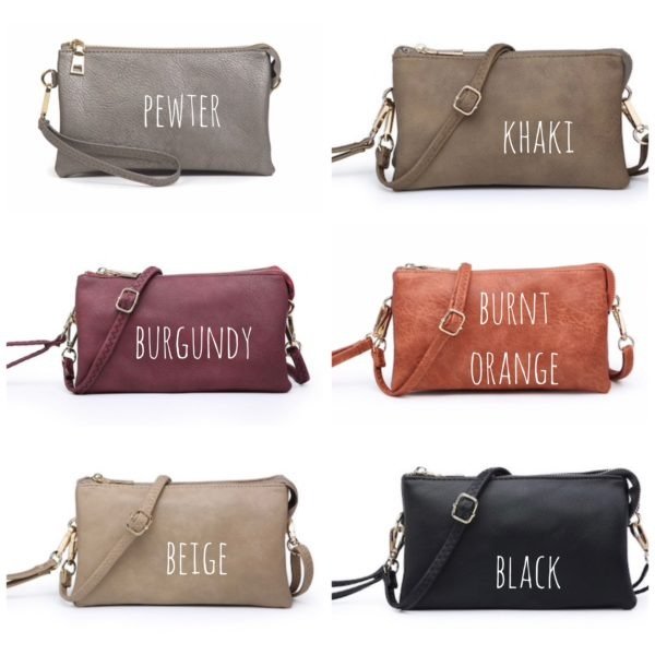 Crossbody purse that can also be used as a wristlet. It has 3 compartments, zipper closure, 6 credit card slots & detachable shoulder strap and wristlet strap.